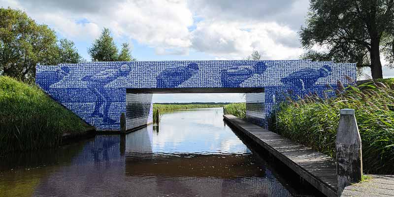 monument gewijd: De Elfsteden Tegeltjesbrug over het riviertje de Murk